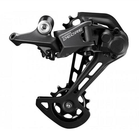Utilizando-se da tecnologia Shadow RD+, o câmbio traseiro Deore M5100, da Shimano, oferece desempenho consistente de trocas de marchas em terrenos acidentados.