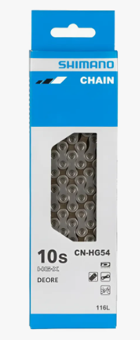 Perfeito para mountain bikes de 10 velocidades, a HG-54 é uma corrente direcional HG-X super estreita com um design anti-lama.